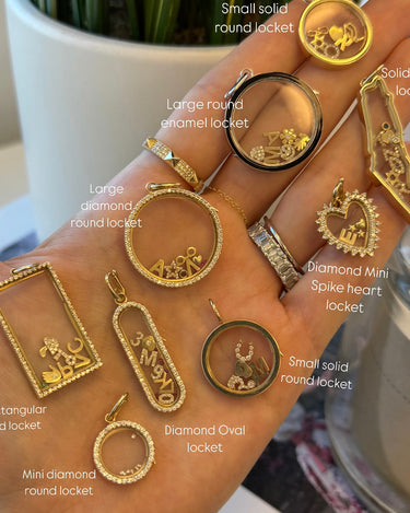 Your new obsession has arrived, and it’s looking sparklier than ever! Our custom charm lockets are here to make your necklace game that much stronger. Check out all our different customization options and styles, as we offer a variety of shapes, sizes, and diamond options.