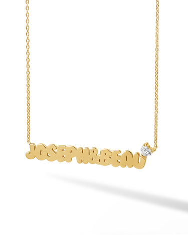 This is how 770 does classic. This solid name necklace is a piece you'll never want to take off. With an open-ended design for easy wear and just the right features, it is a must-have for any layering stack.