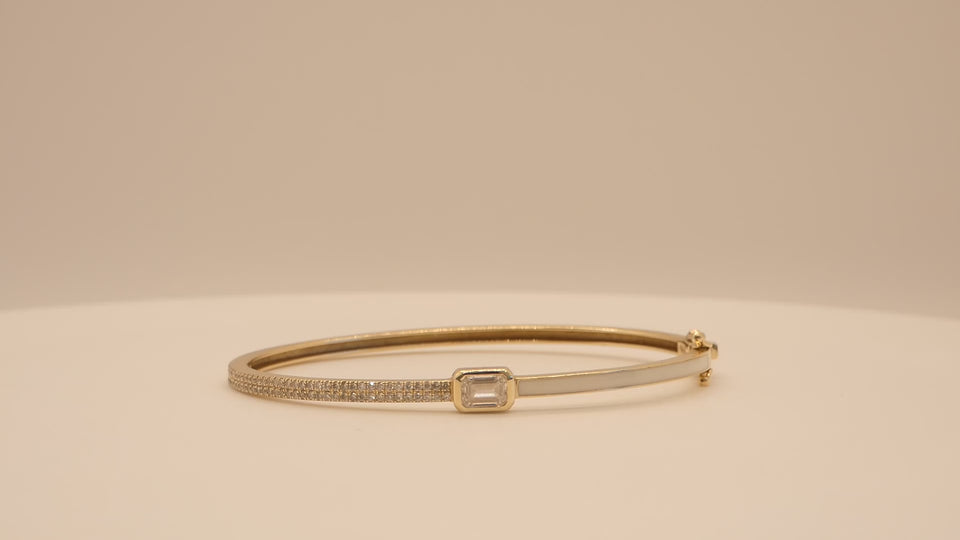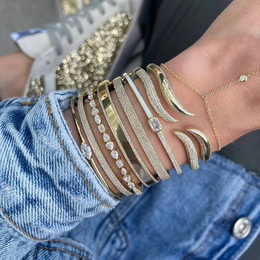 This is how 770 does classic. This quintessential diamond bangle is a piece you'll never want to take off. With an open-ended design for easy wear and just the right features, it is a must-have for any layering stack. The perfect statement-maker for any occasion. Wear it stacked, or by itself. This gorgeous bangle features: