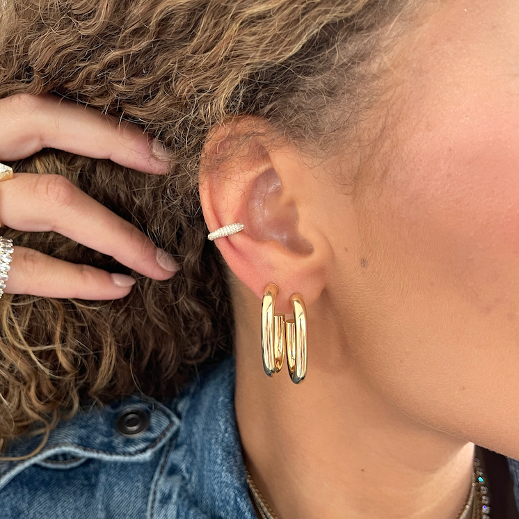 The perfect statement-maker for any occasion. Wear it stacked, or by itself. This gorgeous earring features: