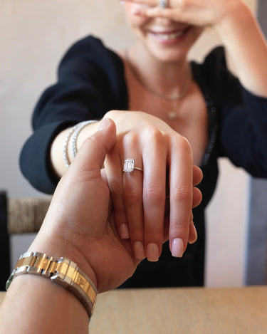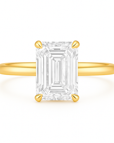 Emerald Cut Lab Diamond on Thin Solid Band Ring - IGI Certified