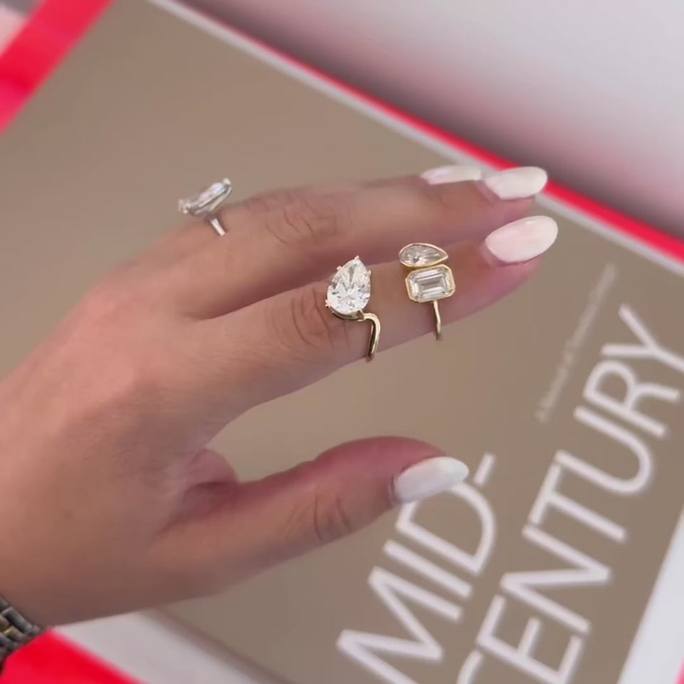 Pear Cut Wave Lab Diamond Ring - IGI Certified