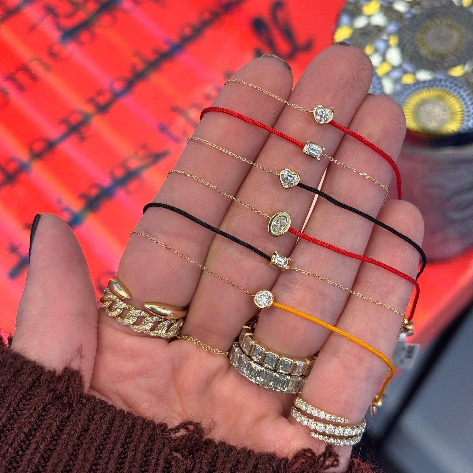 18k Bezel Oval Diamond Chain/Silk Cord Bracelet