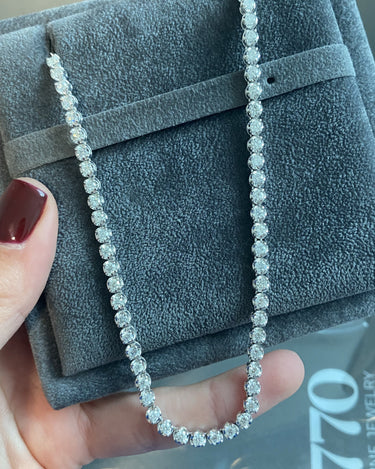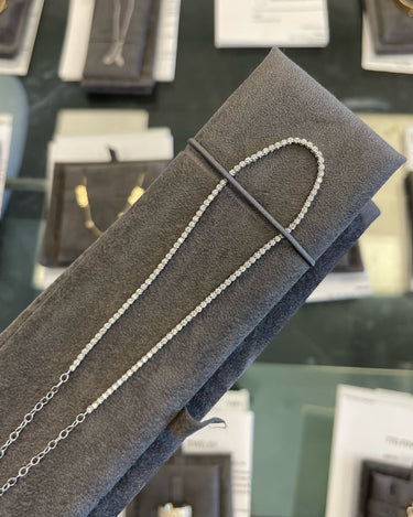 This is how 770 does classic. This quintessential diamond necklace is a piece you'll never want to take off. With an open-ended design for easy wear and just the right features, it is a must-have for any layering stack.