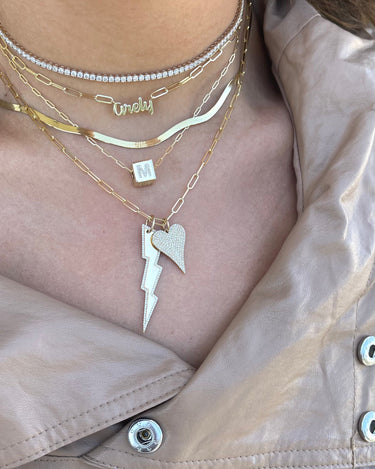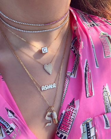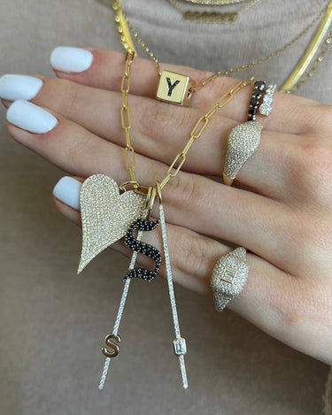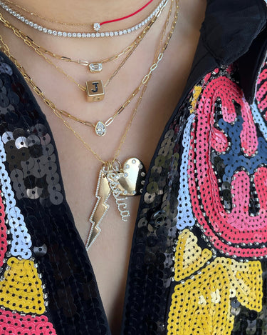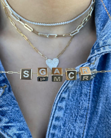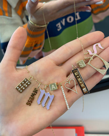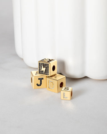 This is how 770 does modern. This quintessential cube initial charm is a piece you'll never want to take off. With an open-ended design for easy wear and just the right features, it is a must-have for any layering stack.