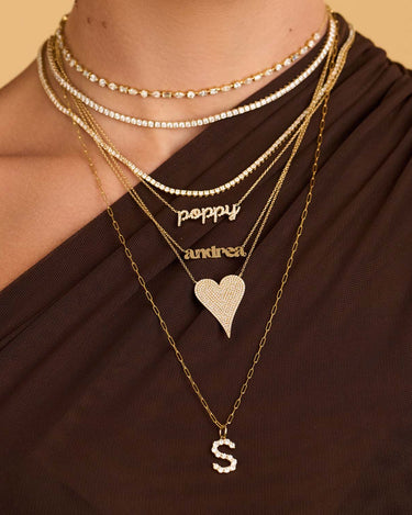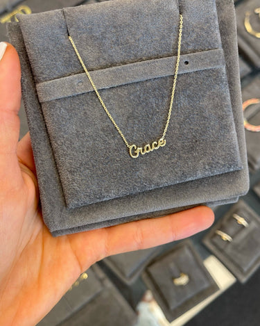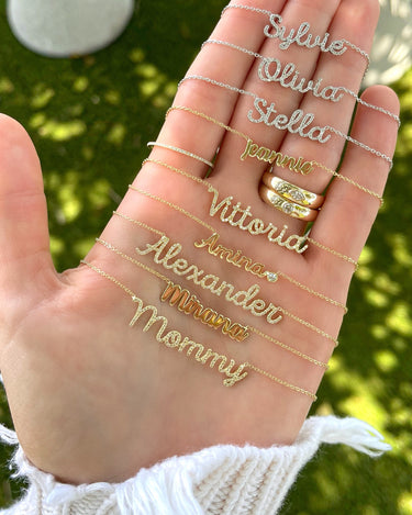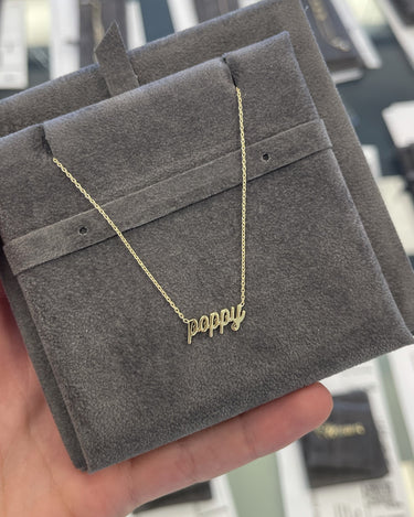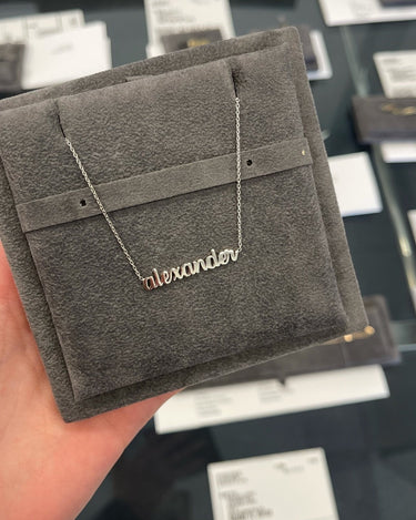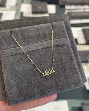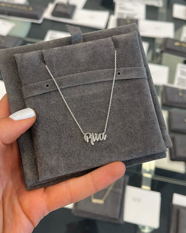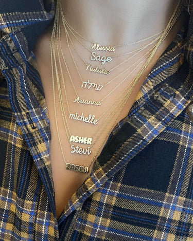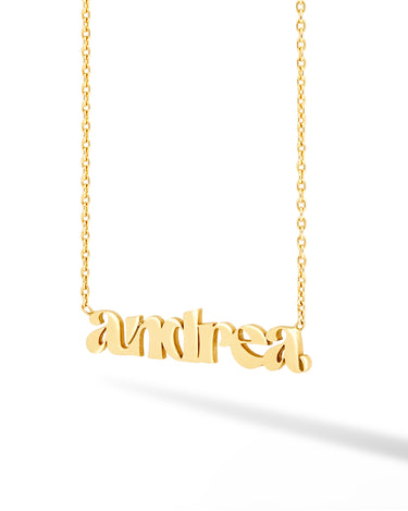 This is how 770 does classic. This solid name necklace is a piece you'll never want to take off. With an open-ended design for easy wear and just the right features, it is a must-have for any layering stack.