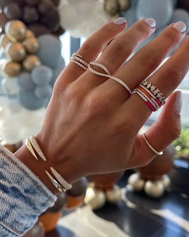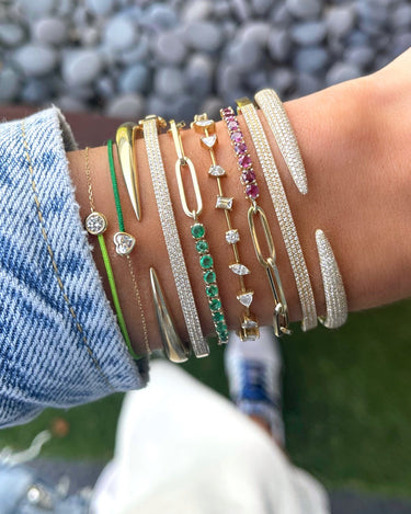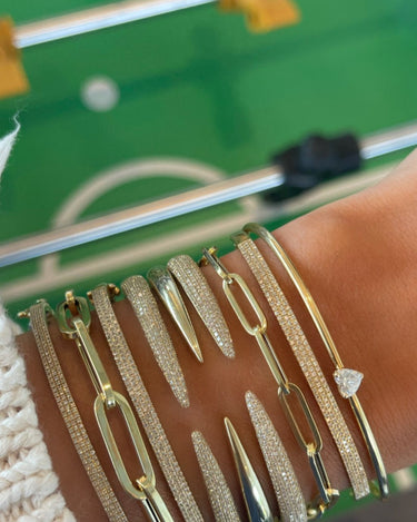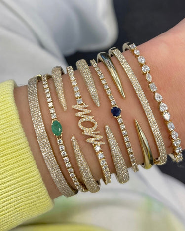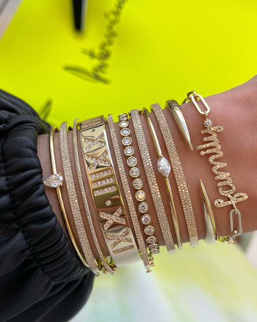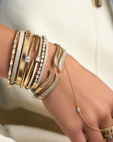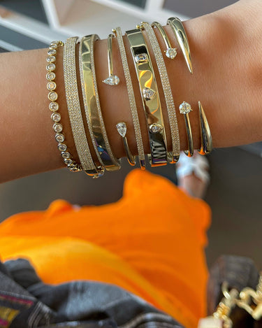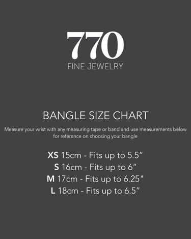 This is how 770 does classic. This quintessential diamond bangle is a piece you'll never want to take off. With an open-ended design for easy wear and just the right features, it is a must-have for any layering stack. The perfect statement-maker for any occasion. Wear it stacked, or by itself. This gorgeous bangle features:
