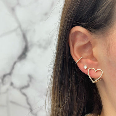 This is how 770 does classic. This quintessential diamond earring is a piece you'll never want to take off. With an open-ended design for easy wear and just the right features, it is a must-have for any layering stack. The perfect statement-maker for any occasion. Wear it stacked, or by itself. This gorgeous earring features: