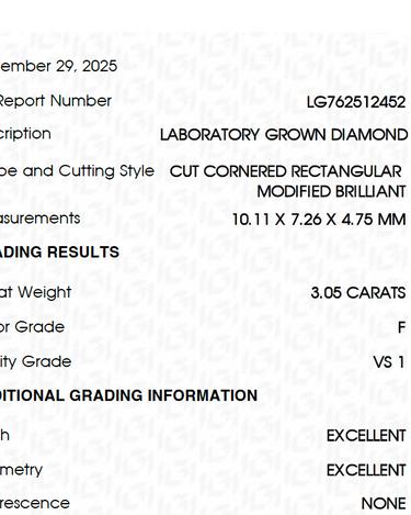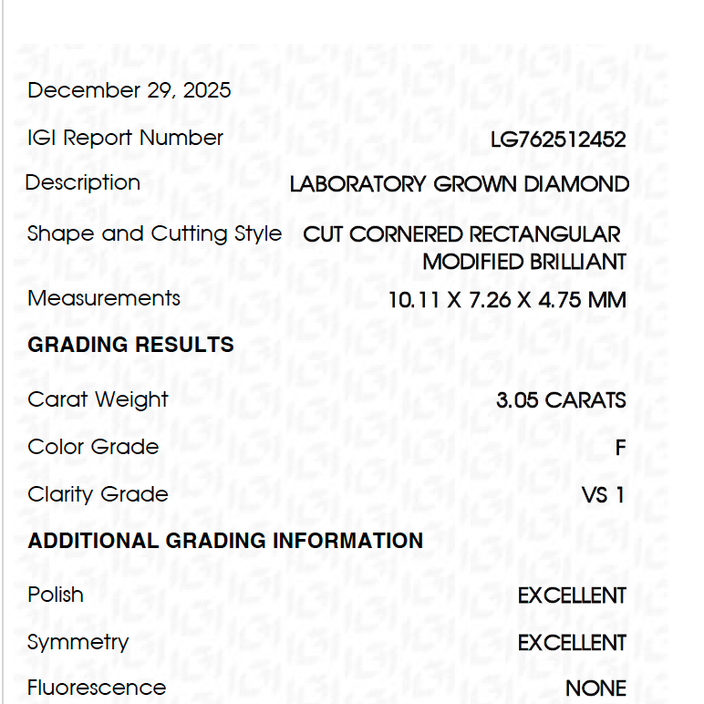 3.05ct Lab diamond Radiant IGI --- live sweepstakes TUESDAY Feb 24