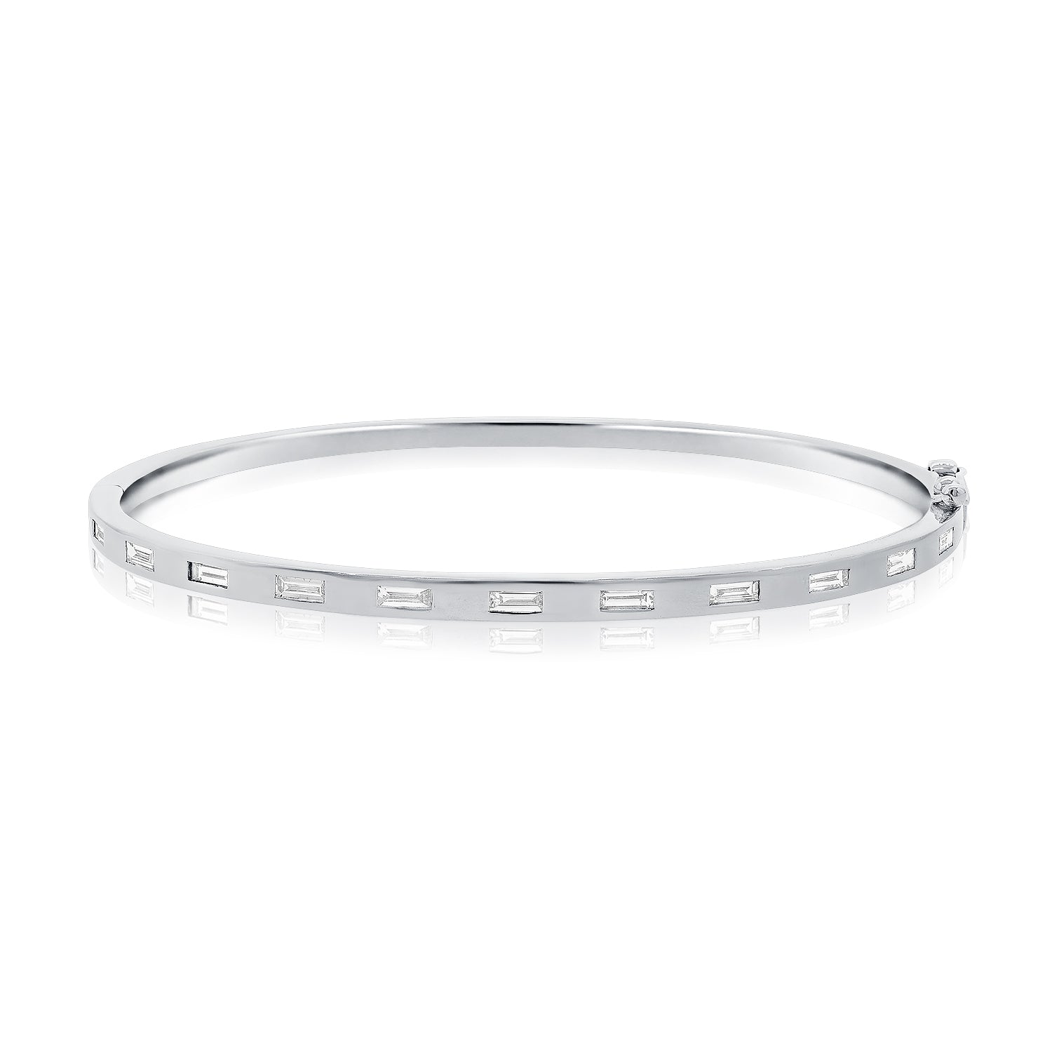 This is how 770 does classic. This quintessential diamond baguettes bangle is a piece you'll never want to take off. With an easy clasp design for easy wear and just the right width, it is a must-have for any stack.