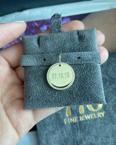 Because who doesn't love adding some uniqueness to your favorite pieces? We've updated the classic, signature disc charm with a seriously stunning engravable trim and diamond outline, with nothing but elegance and detail.
