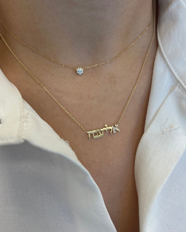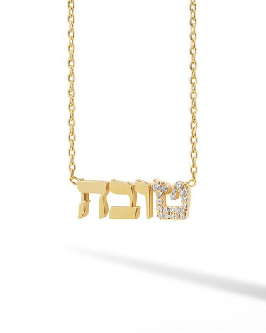 Diamond Accent Initial Hebrew Name Necklace