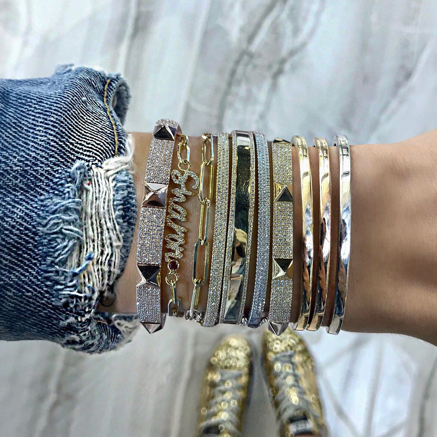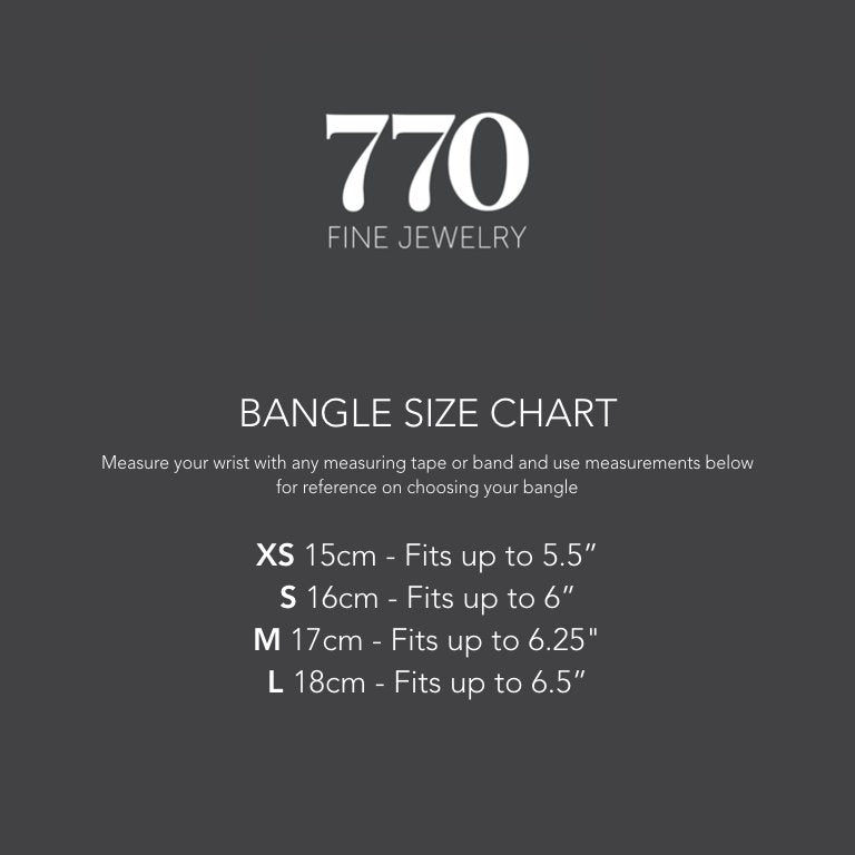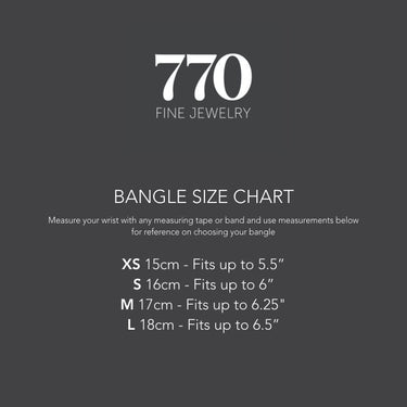 This is how 770 does classic. This quintessential diamond bangle is a piece you'll never want to take off. With an open-ended design for easy wear and just the right features, it is a must-have for any layering stack. The perfect statement-maker for any occasion. Wear it stacked, or by itself. This gorgeous bangle features: