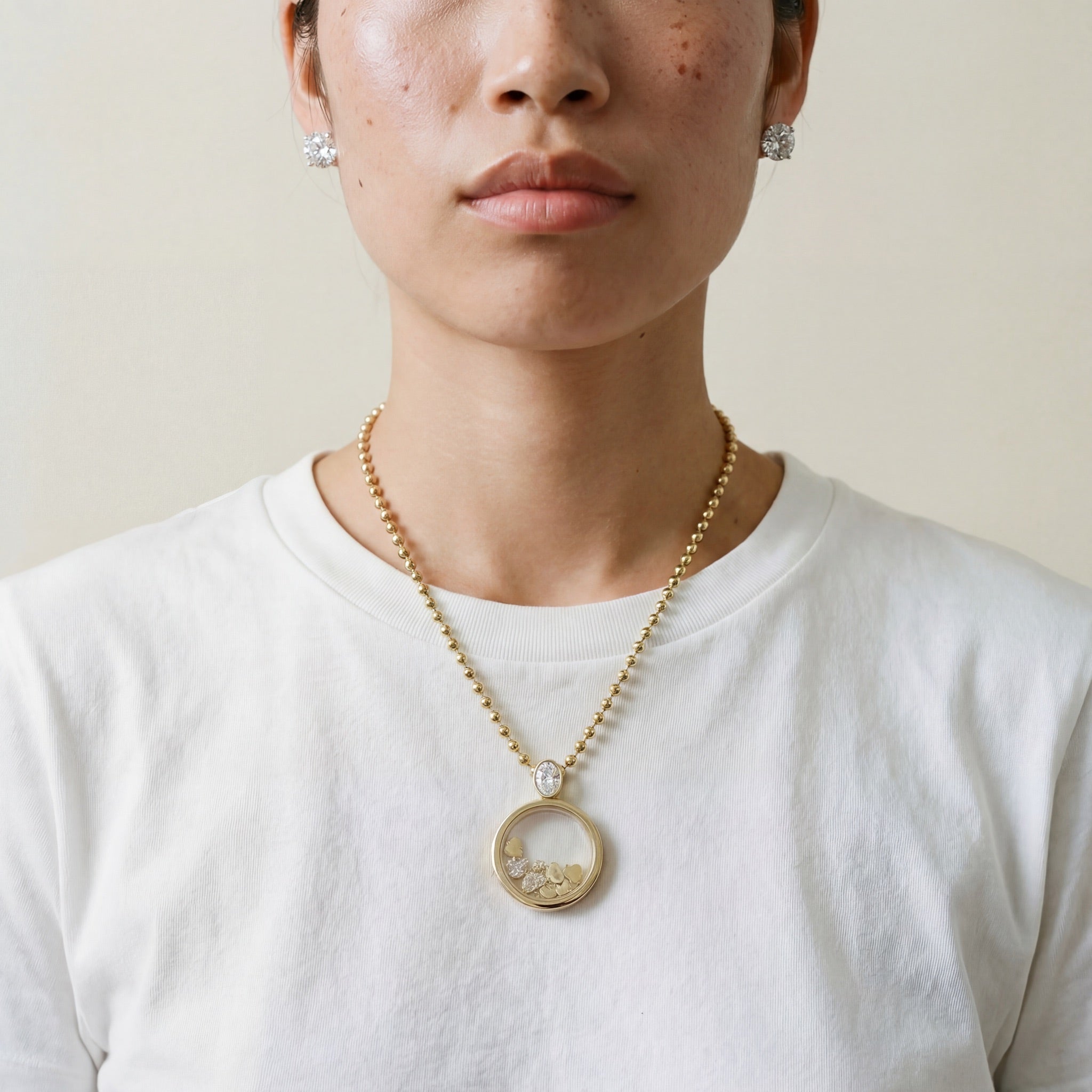 Mixed Shape Lab Diamond Round Glass Charm Locket