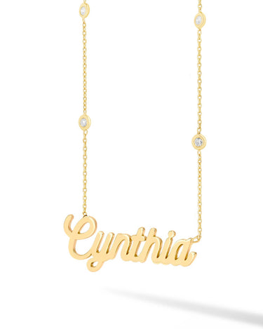 This unique and personal statement-maker is available in all 14k gold colors. It features a Diamond Name Plate with your special name or customization. Specify your customization and get creative!